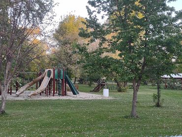 Enjoy our small-town park with a variety of amenities including a campground, baseball/softball diamonds, pickleball court, basketball court, playground, dog-friendly areas, grills, and a scenic picnic shelters perfect for a day in the park.